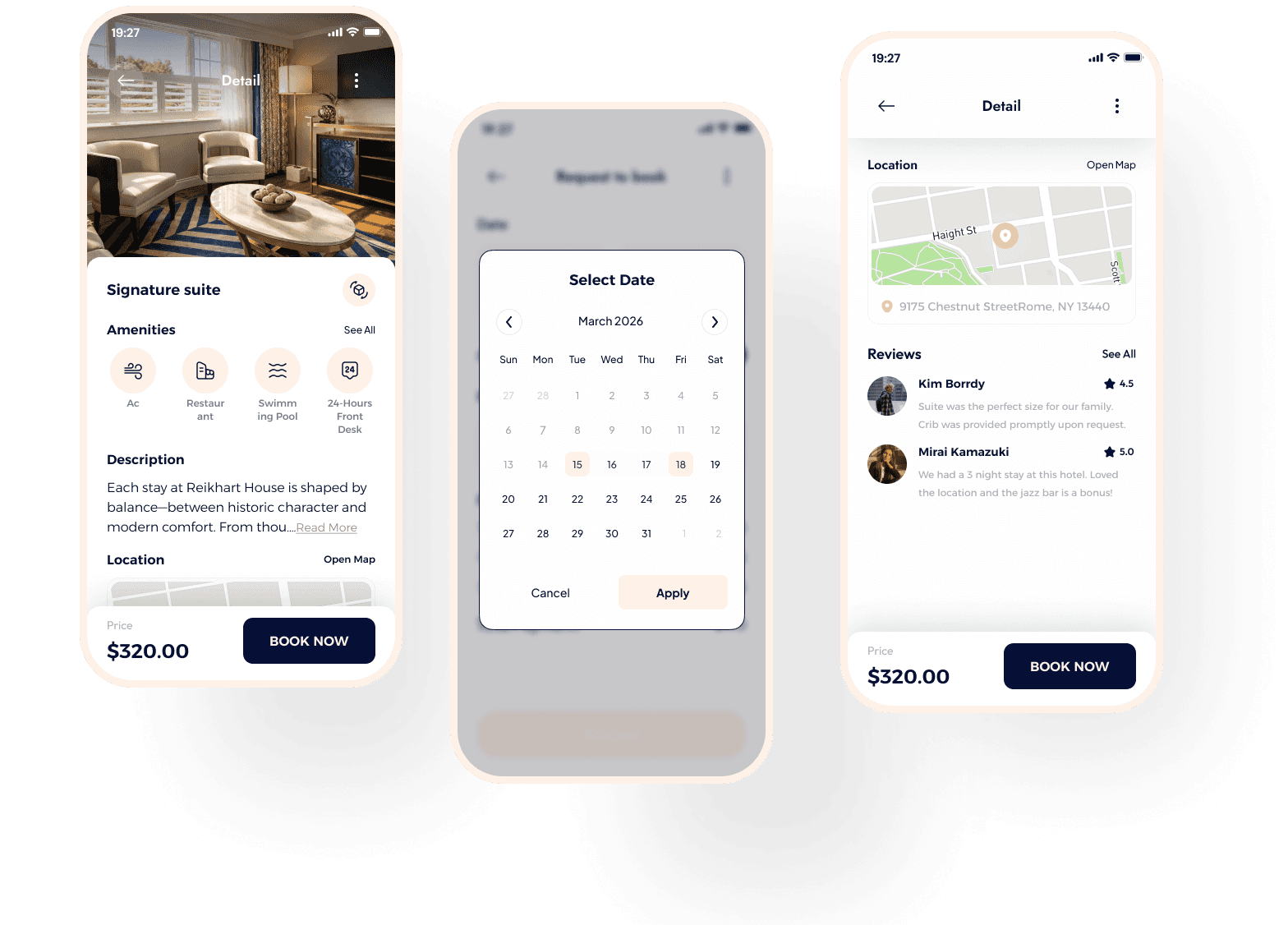 The booking experience is designed to feel like a natural continuation of the site, not a separate, transactional step. Availability is introduced early and stays accessible throughout, allowing guests to check dates and move forward without interrupting the tone of the experience. Clear structure, minimal steps, and restrained visual treatment keep the focus on ease—so booking feels simple, calm, and considered.